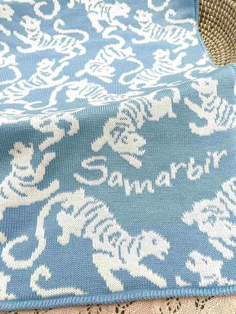 Discover our exquisite range of personalised luxury knitted gifts inspired by the enchanting savannah. Each piece—whether a cosy merino blanket, a plush cushion, or a charming greetings card—is thoughtfully designed with adorable lions, majestic tigers, graceful giraffes, and gentle elephants, bringing the magic of the wild right into your little one’s nursery. Crafted from the finest materials and fully customisable with names and date of birth (optional), these luxurious keepsakes make perfect, heartfelt gifts that celebrate new beginnings with timeless style and warmth. Merino wool is a natural fibre prized for its exceptional softness, breathability, and temperature-regulating properties. It keeps babies warm without overheating, thanks to its ability to wick moisture away from the skin, ensuring comfort throughout the day and night. Hypoallergenic and gentle on delicate skin, merino wool is also naturally odour-resistant and durable, making it an ideal choice for luxury baby clothing and accessories. Its sustainable and biodegradable nature further enhances its appeal for conscientious parents seeking both comfort and eco-friendliness.